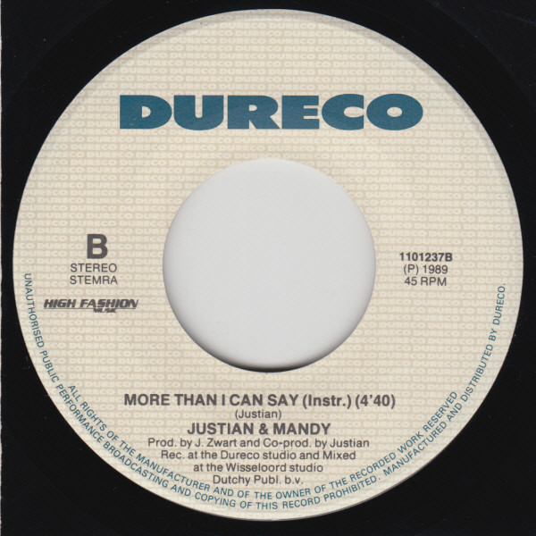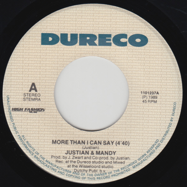 Justian & Mandy – More Than I Can Say (1989) – Very Good Plus (VG+)