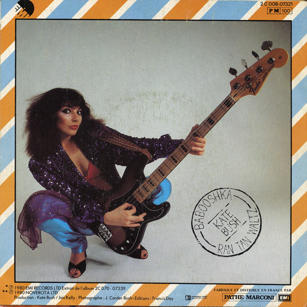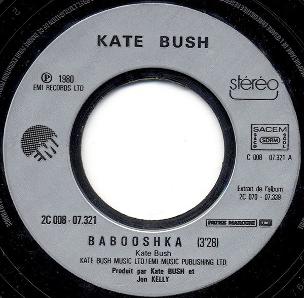 Side A: Extrait de l’album [url=http://www.discogs.com/Kate-Bush-Never-For-Ever/release/1759976]’Never For Ever'[/url] 2C 070-07339 ℗ 1980 EMI Records Ltd. Side B: Previously unreleased, not available on album ℗ 1980 Novercia Ltd. (misspelled as ‘Novercita Ltd.’ on the back cover, spelled correctly on the center label) Editions : Francis Day Kate Bush Music Ltd/EMI Music Publishing Ltd Fabriqué et distribué en France par Pathé Marconi EMI Montreuil Offset – Imprimé en France Made in France. Large white oval Babooshka stamp on front sleeve Other version with [url=http://www.discogs.com/Kate-Bush-Babooshka/release/579255]different cover[/url]