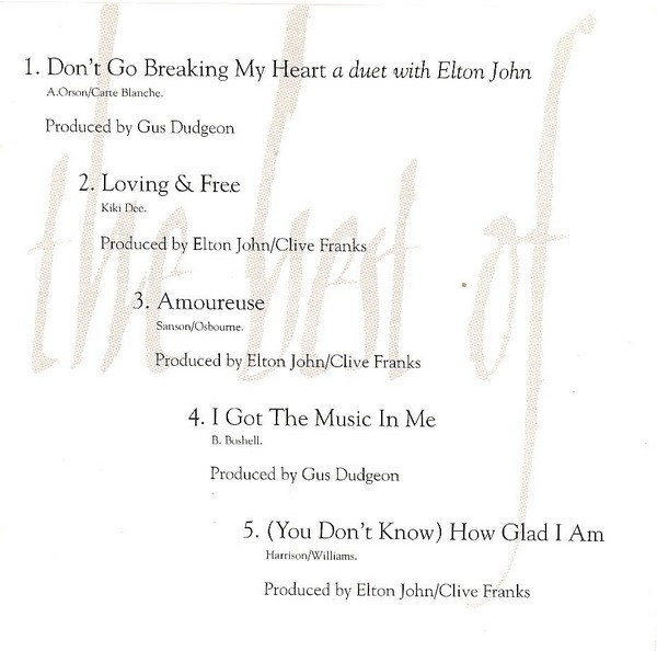 Kiki Dee – The Very Best Of Kiki Dee (1994) – Very Good Plus (VG+)