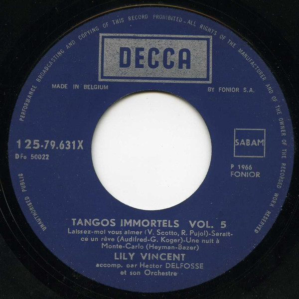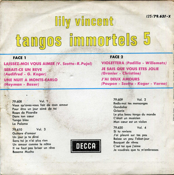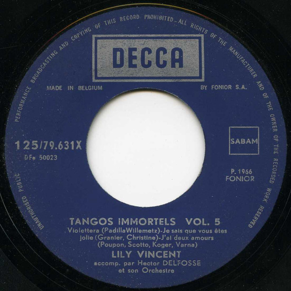Lily Vincent – Tangos Immortels Vol. 5 (1966) – Very Good (VG)