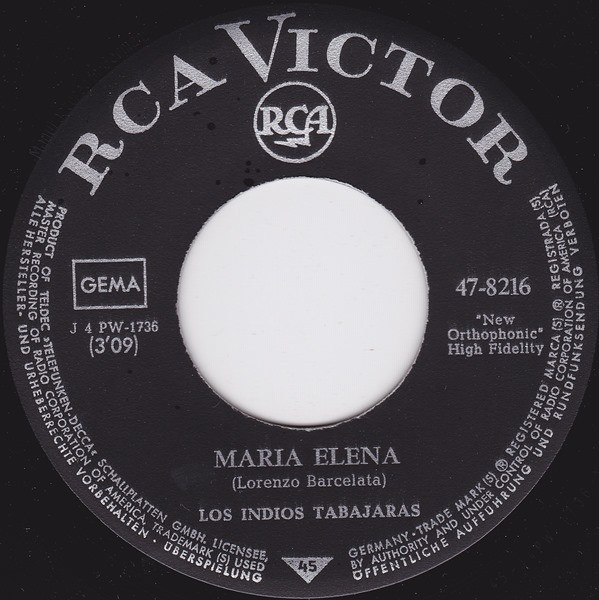 Los Indios Tabajaras – Maria Elena (1963) – Very Good Plus (VG+)