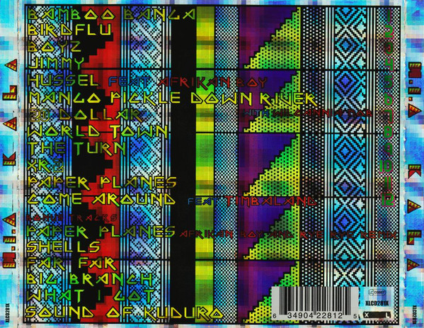 Standard double jewel case with clear tray & 20-page booklet. Cover of booklet & back cover inlay are made iridescent. Main artist written as ‘MIA’ on front cover and ‘M.I.A’ on the spine. ‘Bamboo Banga’ published by Zomba Music Publishing/Copyright Control. Incorporates elements of ‘Roadrunner’, written by Jonathan Richman, published by Modern Love Songs/Rockin’ Leprechaun Music; ‘Kaattukkuyilu’ from the film ‘Dalapathi’, written and performed by Ilayaraja, licensed courtesy of GV Films Ltd. ‘Bird Flu’ published by Zomba Music Publishing/Copyright Control. Incorporates elements of ‘Thirvizha Na Vantha’ from the film ‘Jayam’ written and performed by R.P. Patnaik, licensed courtesy of Jeyam Company. ‘Boyz’ published by Zomba Music Publishing/Copyright Control. ‘Jimmy’ published by Zomba Music Publishing/Copyright Control. Incorporates elements of ‘Jimmy Jimmy Aaja Aaja’ from the film ‘Disco Dancer’, written by Bappi Lahiri, published by Saregama. ‘Hussel’ published by Zomba Music Publishing/Copyright Control/Hollertronix Music (ASCAP). ‘Mango Pickle Down River’ published by Zomba Music Publishing/Copyright Control. Remixed from the original recording ‘Down River’ by the Wilcannia Mob, created in the town of Wilcannia, NSW for a community project by Shopfront Theatre for Young People, Sydney, Australia. ’20 Dollar’ published by Zomba Music Publishing/Copyright Control. Incorporates elements of ‘Where Is My Mind’, written by Charles Thompson, published by Songs Of Universal / Rice and Beans Music. ‘World Town’ published by Zomba Music Publishing/Copyright Control. Incorporates elements of ‘Hands Up, Thumbs Down’ written by Blaqstarr, published by JB Starr Publishing. ‘The Turn’ published by Zomba Music Publishing/JB Starr Productions. ‘XR2’ published by Zomba Music Publishing/Hollertronix Music (ASCAP)/Copyright Control. ‘Paper Planes’ published by Zomba Music Publishing/Hollertronix Music (ASCAP). Incorporates elements of ‘Straight To Hell’, written by Joe Strummer, Mick Jones, Paul Simonon and Topper Headon, published by Nineden Ltd./Universal Music Publishing Ltd./Universal Polygram International. ‘Come Around’ published by Virginia Beach Music Publishing/Warner Chappell Publishing (ASCAP)/Stix I’m Stoned Publishing/Universal Music Publishing (ASCAP)/Zomba Music Publishing. Mixed at Chalice Studios Los Angeles, CA. ‘Paper Planes (Afrikan Boy And Rye Rye Remix)’ published by Zomba Music Publishing/Hollertronix Music (ASCAP). Incorporates elements of ‘Straight To Hell’, written by Joe Strummer, Mick Jones, Paul Simonon and Topper Headon, published by Nineden Ltd./Universal Music Publishing Ltd. ‘Shells’ published by Zomba Music Publishing ‘Far Far’ published by Zomba Music Publishing/Copyright Control ‘Big Branch’ published by Zomba Music Publishing/ Copyright Control/ Hollertronix Music (ASCAP) ‘What I Got’ published by Zomba Music Publishing/JB Starr Productions ‘Sound Of Kuduro’ published by Copyright Control/Zomba Music Publishing ℗ & © 2007 XL Recordings Ltd.