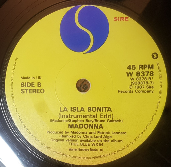 Madonna – La Isla Bonita (Remix) (1987) – Very Good Plus (VG+)