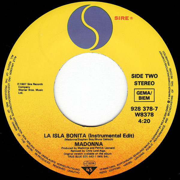 - B – La Isla Bonita (Instrumental Edit) (4:20)