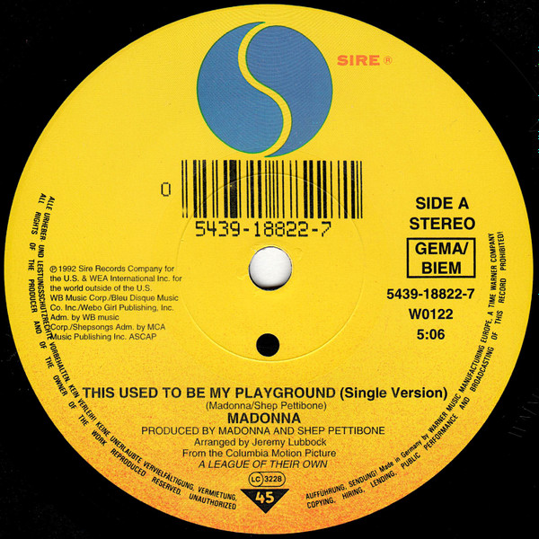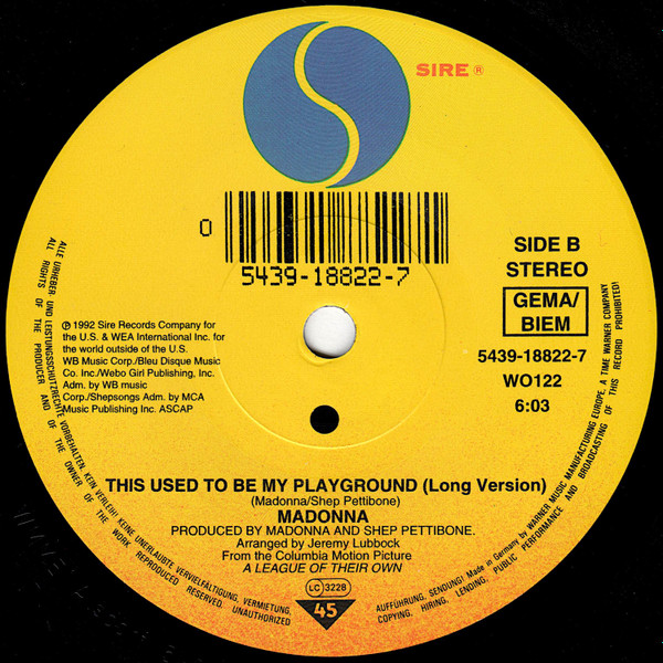 Madonna – This Used To Be My Playground (1992) – Very Good Plus (VG+)