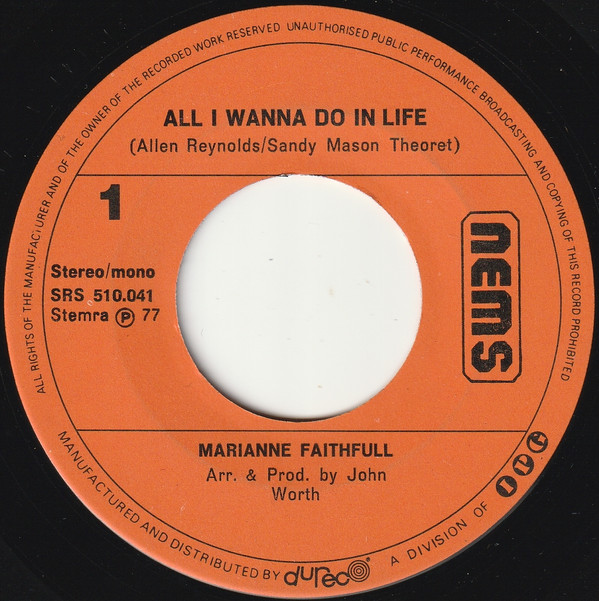 Marianne Faithfull – All I Wanna Do In Life (1977) – Very Good Plus (VG+)