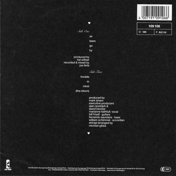 Marianne Faithfull – As Tears Go By (1987) – Very Good (VG)