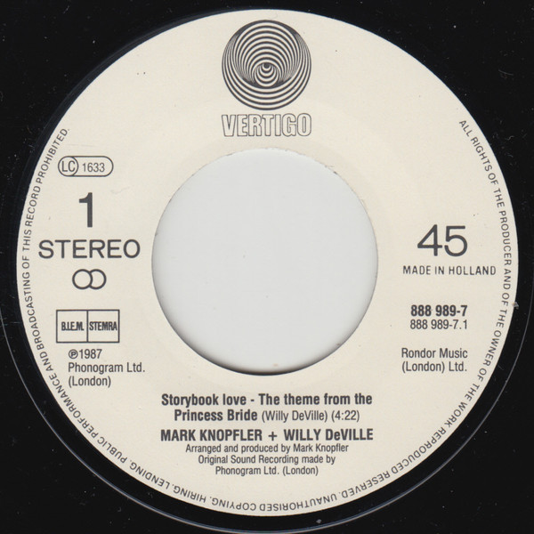 Mark Knopfler – Storybook Love (Theme From The Princess Bride) (1987) – Very Good Plus (VG+)