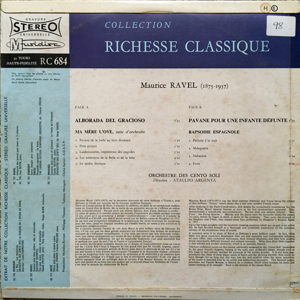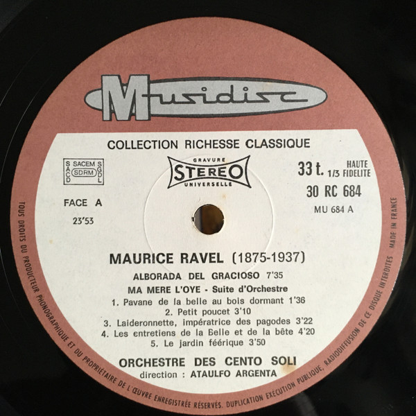 Maurice Ravel – Alborada Del Gracioso, Rapsodie Espagnole, Ma Mère L’oye, Pavane Pour Une Infante Défunte () – Very Good Plus (VG+)