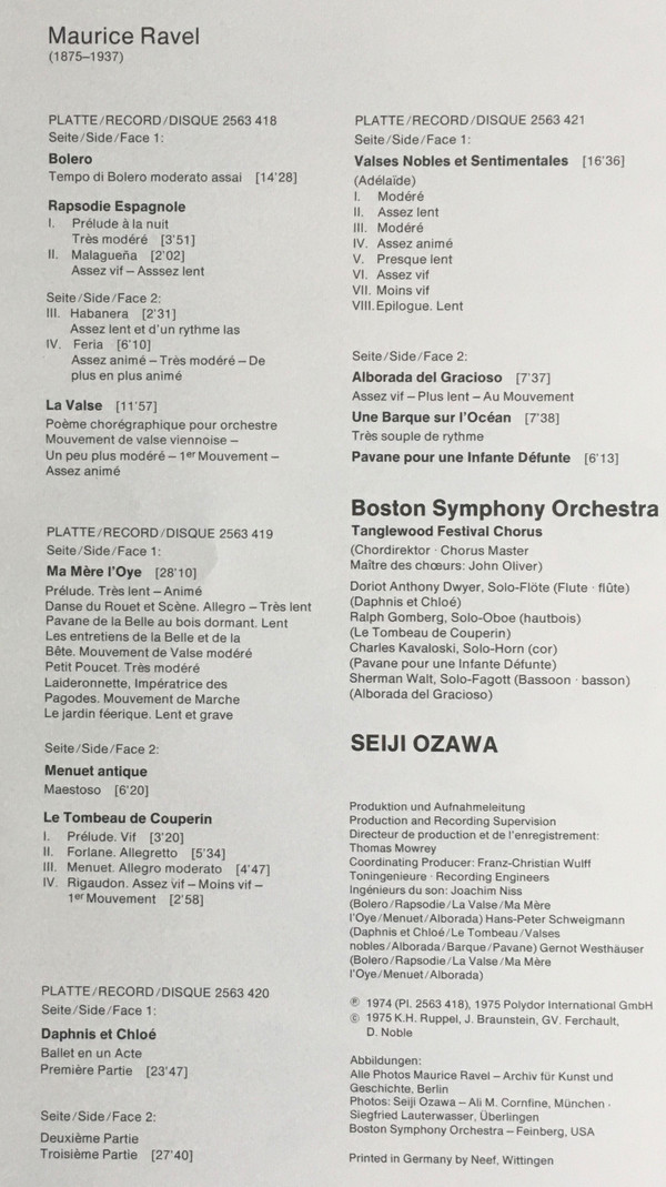 Maurice Ravel – Orchestermusik = Orchestral Works = L’Œuvre Symphonique (1975) – Near Mint (NM or M-)