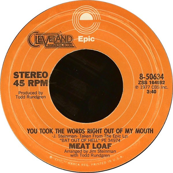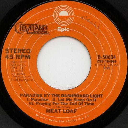 Meat Loaf – You Took The Words Right Out Of My Mouth / Paradise By The Dashboard Light (1977) – Very Good (VG)