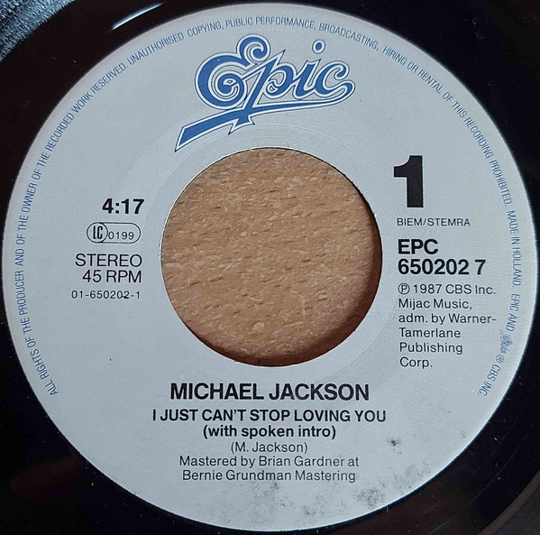 Michael Jackson – I Just Can’t Stop Loving You (1987) – Very Good Plus (VG+)