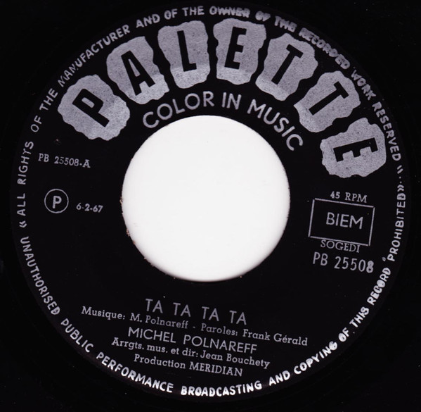 Michel Polnareff – Ta, Ta, Ta, Ta / Le Pauv’ Guitariste (1967) – Very Good (VG)