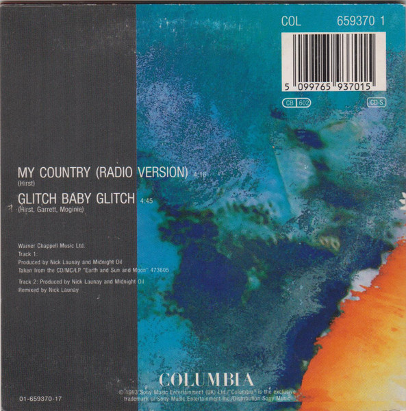 Packed in a cardboard sleeve. Original sound recording made by Midnight Oil. ℗ 1993 Midnight Oil © 1993 Sony Music Entertainment (UK) Ltd/’Columbia’ is the exclusive trademark of Sony Music Entertainment Inc./Distribution Sony Music CB 602 CD-S Track 1 : Taken from the CD/MC/LP ‘Earth and Sun and Moon’ 473605