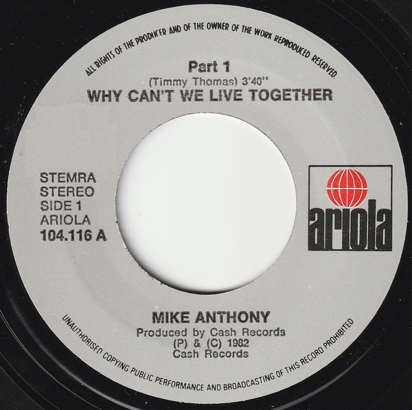 Mike Anthony – Why Can’t We Live Together (1982) – Very Good (VG)