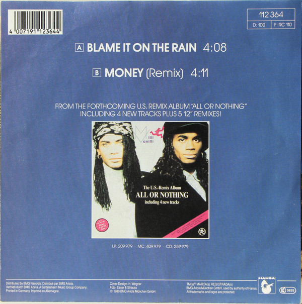 Milli Vanilli – Blame It On The Rain (1989) – Very Good Plus (VG+)