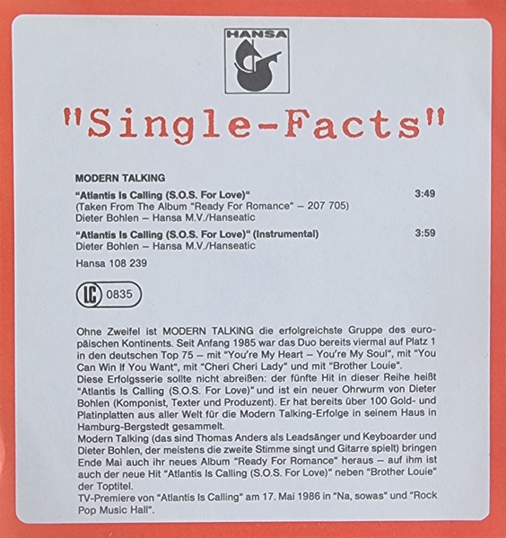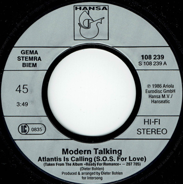 Modern Talking – Atlantis Is Calling (S.O.S. For Love) (1986) – Very Good (VG)