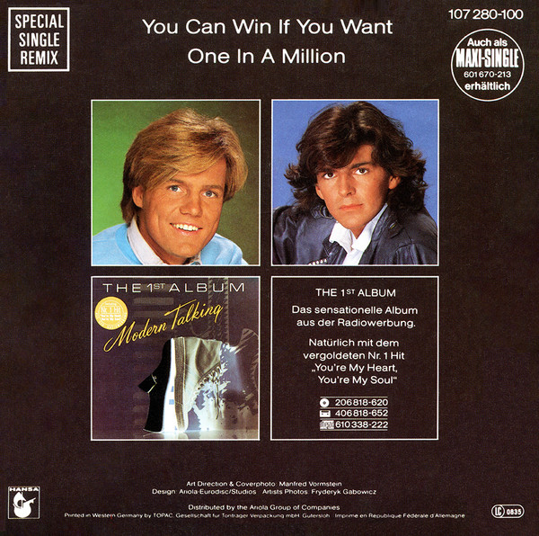 Modern Talking – You Can Win If You Want (Special Single Remix) (1985) – Very Good Plus (VG+)