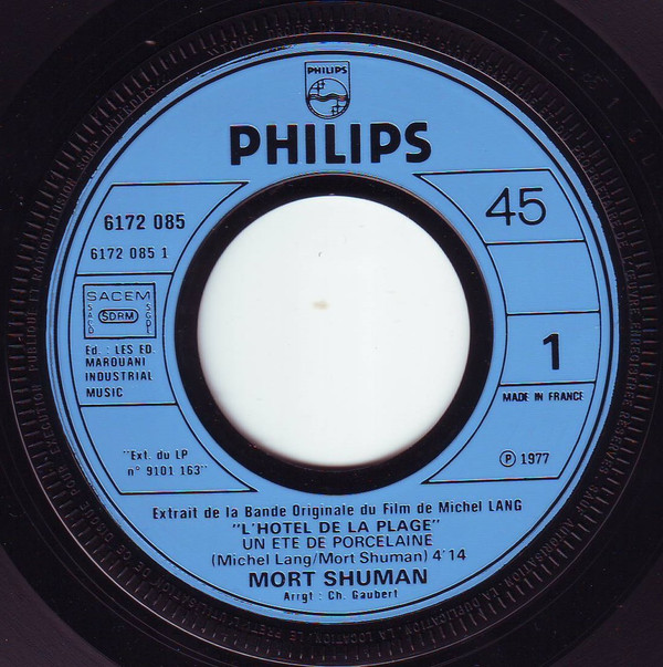 Mort Shuman – Extrait De La Bande Originale Du Film L’hotel de la Plage – Mort Shuman – Un Ete De Porcelaine – Extrait De La Bande Originale Du Film L’hotel de la Plage (1977) – Very Good Plus (VG+)