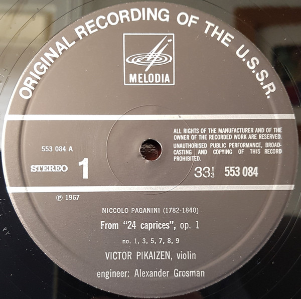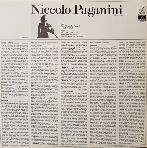Niccolò Paganini – Paganini From ’24 Caprices’, Op. 1 () – Near Mint (NM or M-)