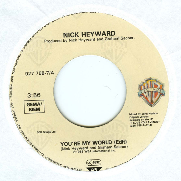 Nick Heyward – You’re My World (1988) – Very Good Plus (VG+)