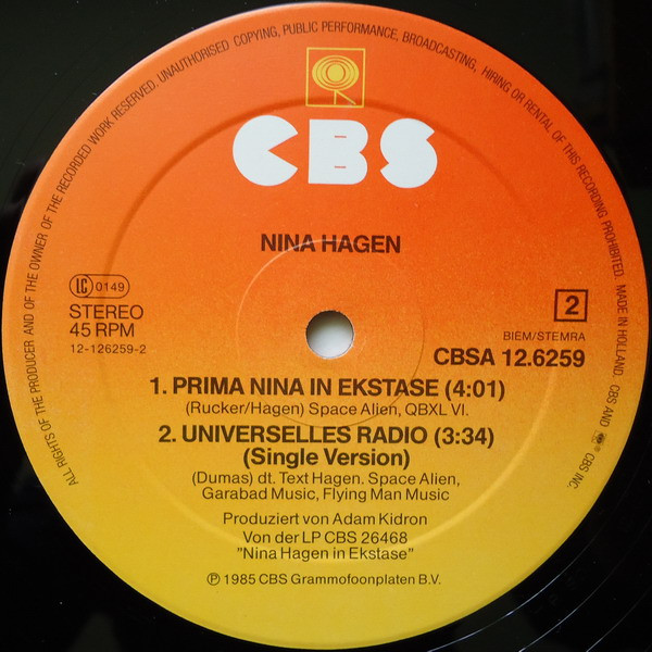 Nina Hagen – Universelles Radio (1985) – Near Mint (NM or M-)