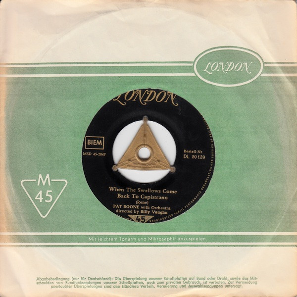 Pat Boone – When The Swallows Come Back To Capistrano / April Love (1957) – Very Good (VG)