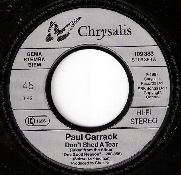 Paul Carrack – Don’t Shed A Tear (1987) – Very Good (VG)