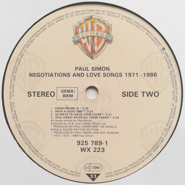 Paul Simon – Negotiations And Love Songs (1971-1986) (1988) – Very Good (VG)