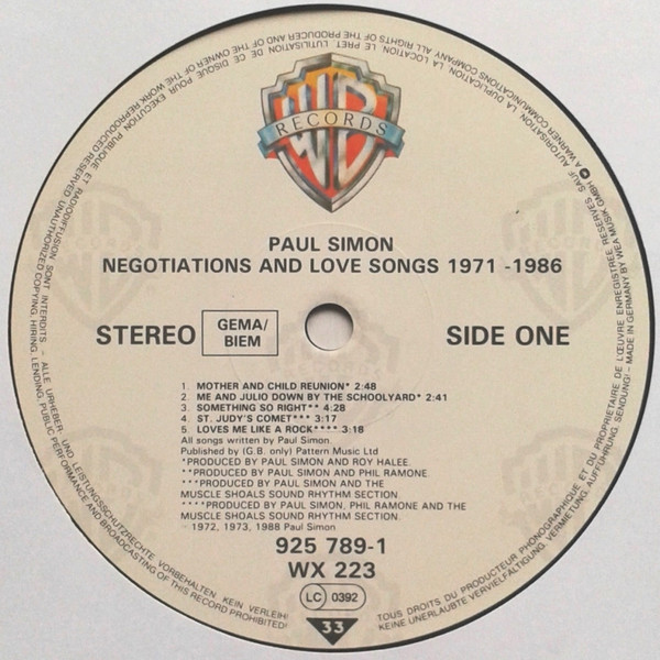 Label: Warner Bros. Records – 925 789-1, Warner Bros. Records – WX 223