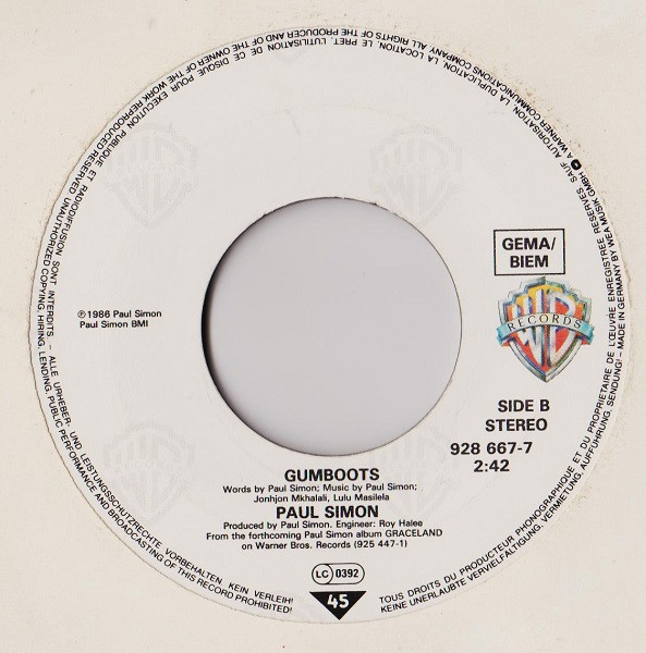 Paul Simon – You Can Call Me Al (1986) – Very Good (VG)