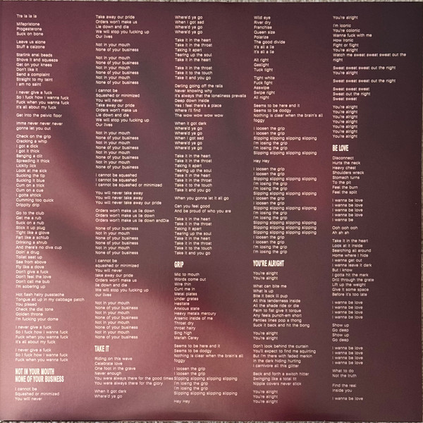 Limited edition electric blue vinyl in a gatefold sleeve. The tracks are numbered sequentially from 1 to 11 on the back cover.
