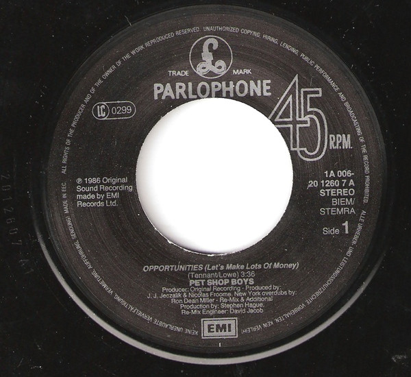 Pet Shop Boys – Opportunities (Let’s Make Lots Of Money) (1986) – Very Good Plus (VG+)
