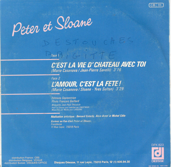 Peter Et Sloane – C’est La Vie D’château Avec Toi (1985) – Very Good (VG)