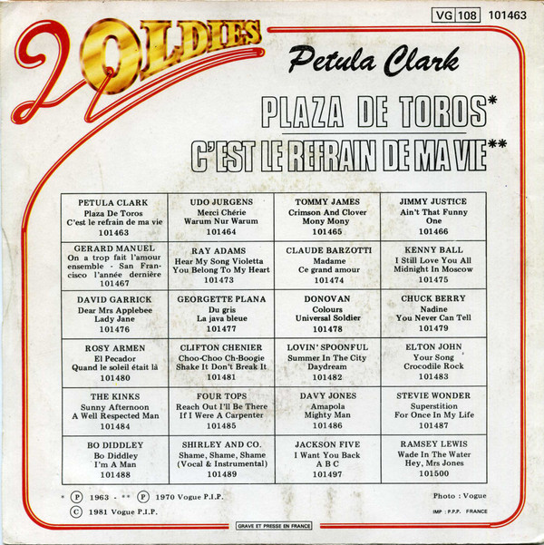 Petula Clark – Plaza De Toros / C’est Le Refrain De Ma Vie