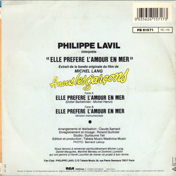 Philippe Lavil – Elle Préfère L’amour En Mer (1985) – Very Good Plus (VG+)