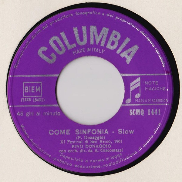 Pino Donaggio – Come Sinfonia / Il Cane Di Stoffa (1961) – Very Good (VG)
