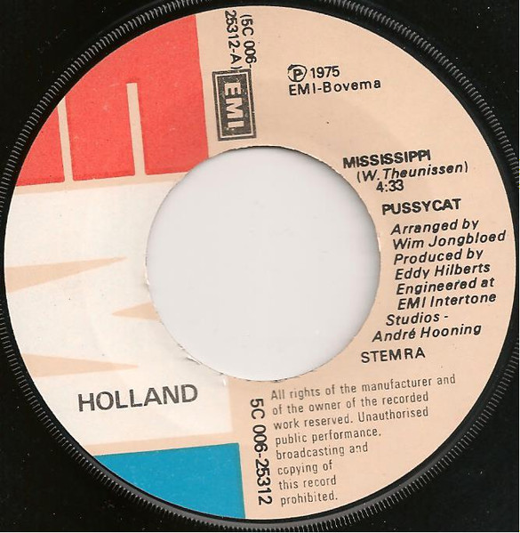℗ 1975 EMI-Bovema Different sleeve from [url=https://www.discogs.com/Pussycat-Mississippi/release/593914] this [/url] one. This sleeve has smaller photos of Betty and Marianne. Also the label have printed EMI in red, white and blue. EMI in Holland introduced the [l=EMI Holland] label for Dutch artists in 1975. So this is obviously one of the versions that was first released with the common EMI labels and later on with the specific [l=EMI Holland] label version.