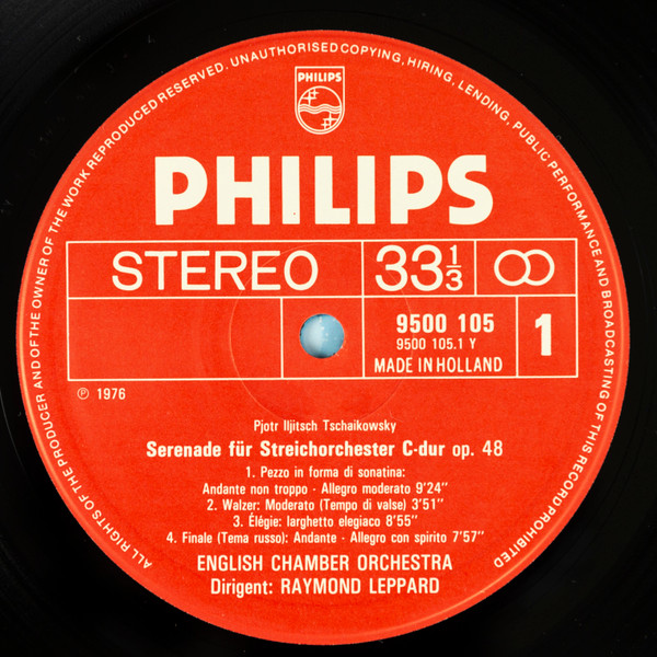 Pyotr Ilyich Tchaikovsky – Serenades For Strings (1976) – Very Good Plus (VG+)