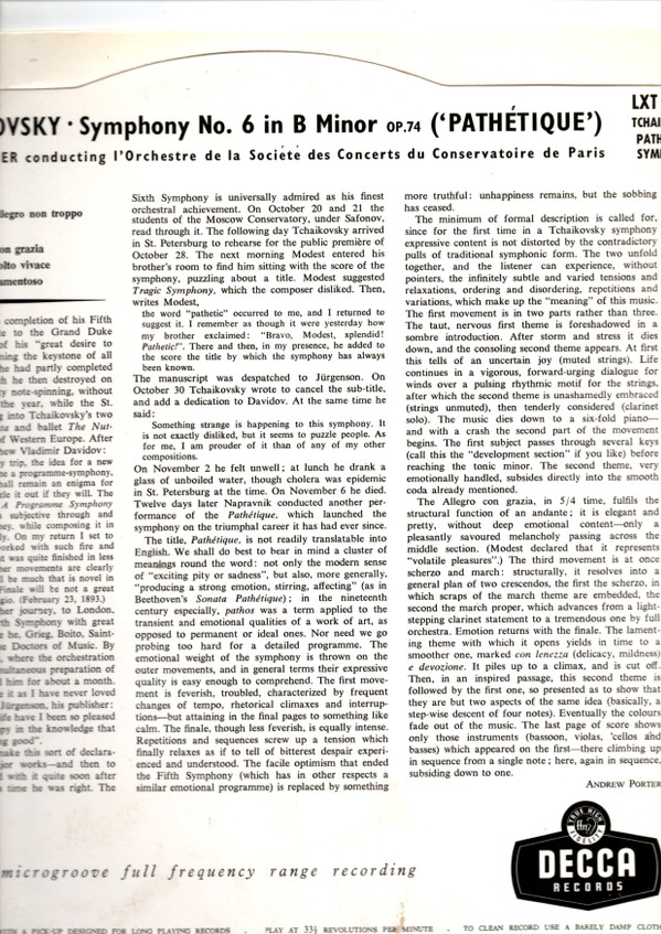 Pyotr Ilyich Tchaikovsky – Symphony No. 6 ‘Pathetique’ (1957) – Very Good Plus (VG+)