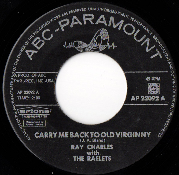 Ray Charles – Carry Me Back To Old Virginny / Georgia On My Mind (1960) – Very Good Plus (VG+)