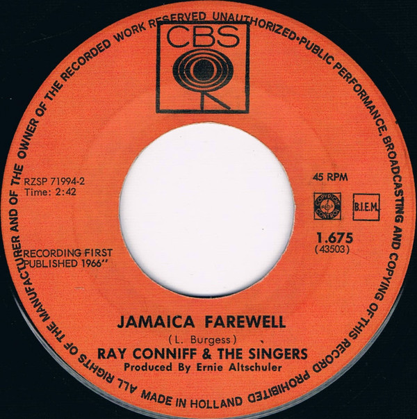 Ray Conniff And The Singers – The Sheik Of Araby / Jamaica Farewell (1966) – Very Good Plus (VG+)