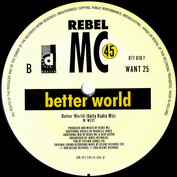 Rebel MC – Better World – Rebel MC – Better World (1990) – Very Good Plus (VG+)