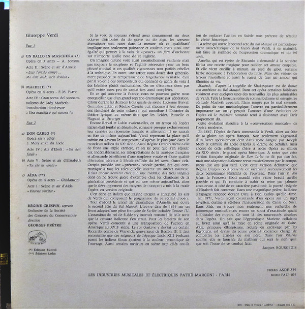 Régine Crespin – Macbeth ● Un Ballo In Maschera ● Don Carlo ● Aida () – Very Good (VG)
