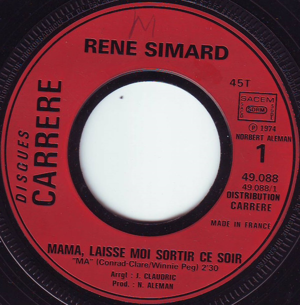 René Simard – Mama, Laisse Moi Sortir Ce Soir (1974) – Very Good (VG)