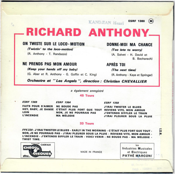 Richard Anthony (2) – On Twiste Sur Le Loco-motion (1963) – Very Good (VG)