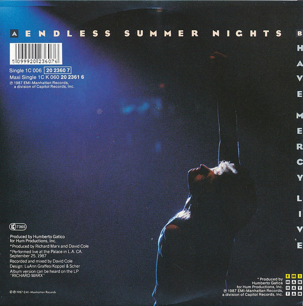 Richard Marx – Endless Summer Nights / Have Mercy (Live) (1988) – Very Good Plus (VG+)