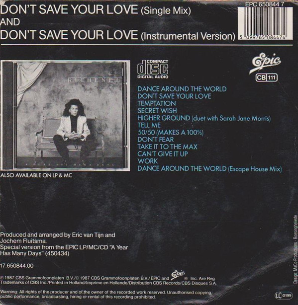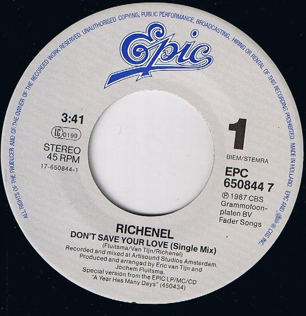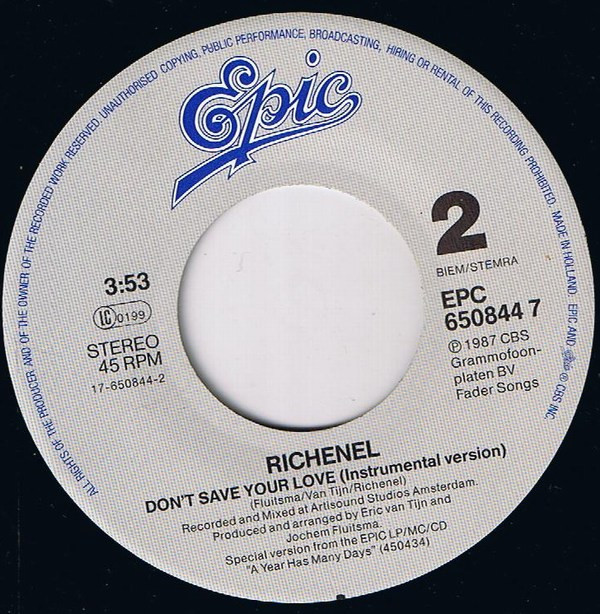 Richenel – Don’t Save Your Love (1987) – Very Good Plus (VG+)