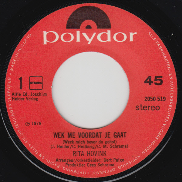 Rita Hovink – Wek Me Voordat Je Gaat (1978) – Very Good Plus (VG+)