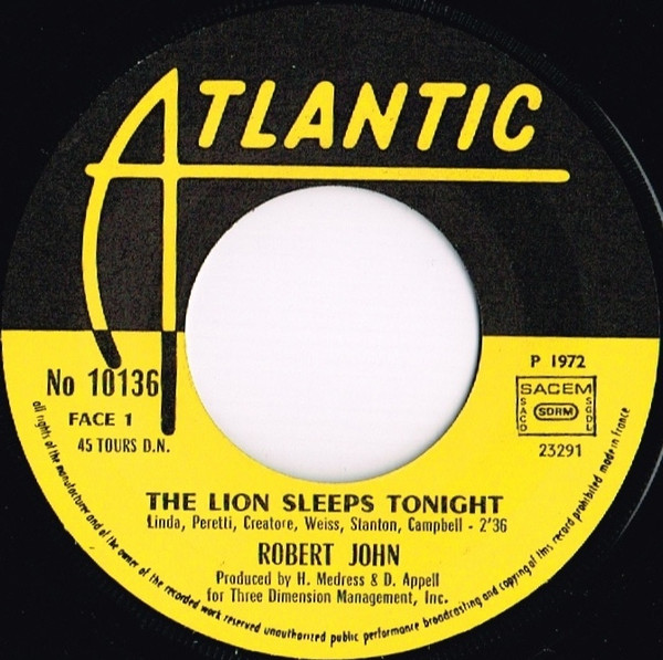 Robert John – The Lion Sleeps Tonight (1972) – Very Good Plus (VG+)